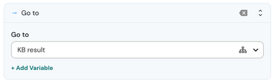 - Füge am unteren Ende des Blocks ein Go-to ein, das zu einem Block führt, den Du in der Dropdown-Liste erstellen kannst. In diesem Beispiel nennen wir diesen Block "KB-Ergebnis".