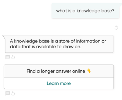 Du kannst die URL einer Knowledgebase Antwort in einem Button verwenden, damit der Benutzer mehr über eine bestimmte Antwort erfahren kann.